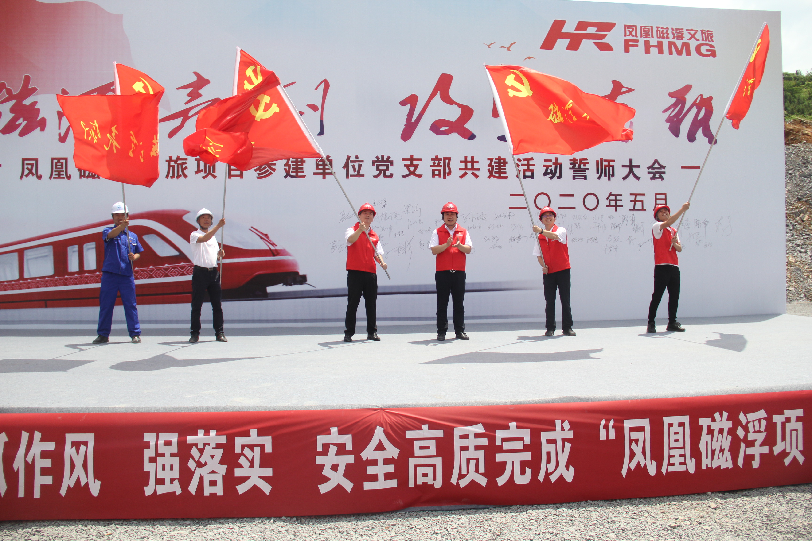 5月28日上午,鳳凰磁浮文旅項目參建單位在車輛段施工現場舉行了以“磁浮亮劍·攻堅克難”為主題的黨支部共建活動誓師大會...